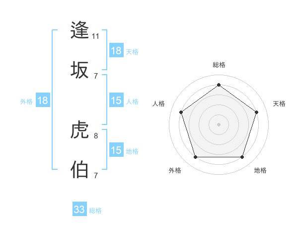 逢坂 虎伯さんを姓名の画数から五運を鑑定