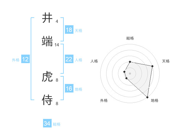 井端 虎侍さんの天格は18画の4点!