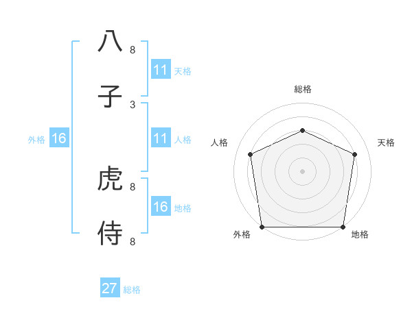 八子 虎侍さんの総格は27画の3点!
