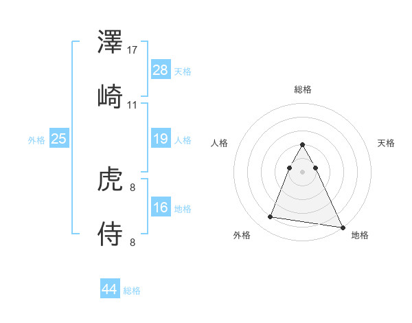 澤崎 虎侍さんの総格は44画の2点!