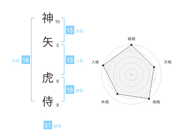 神矢 虎侍さんを姓名の画数から五運を鑑定