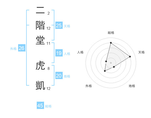 二階堂 虎凱さんを姓名の画数から五運を鑑定