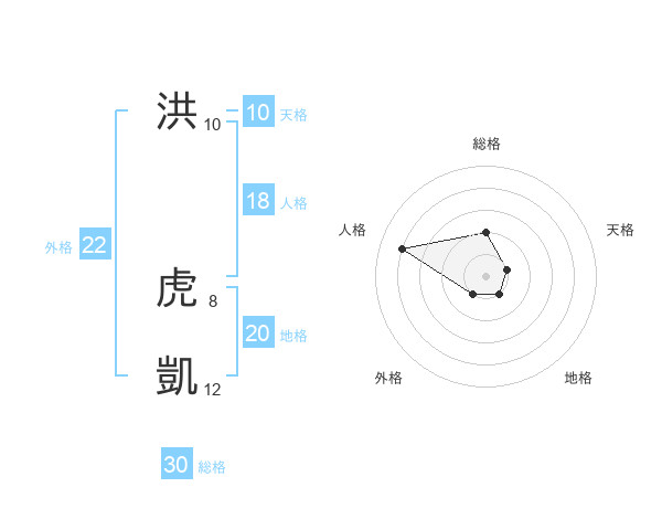 洪 虎凱さんを姓名の画数から五運を鑑定