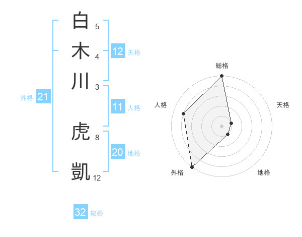 白木川 虎凱さんを姓名の画数から五運を鑑定