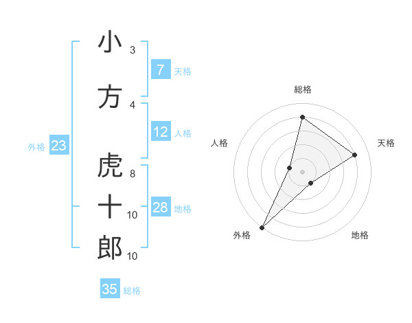 小方 虎十郎さんを姓名の画数から五運を鑑定