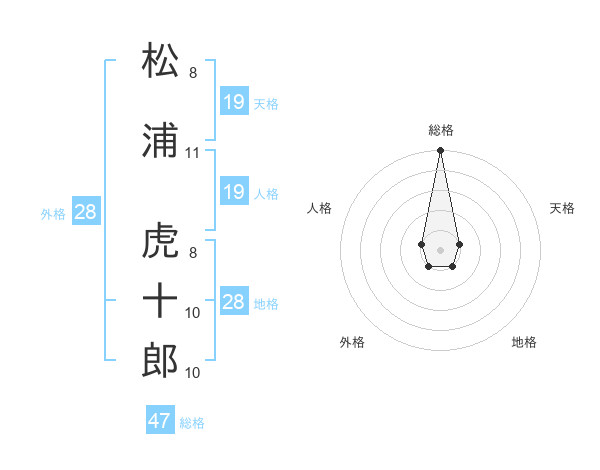 松浦 虎十郎さんの総格は47画の5点