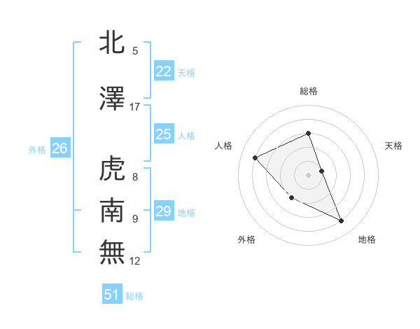 北澤 虎南無さんを姓名の画数から五運を鑑定