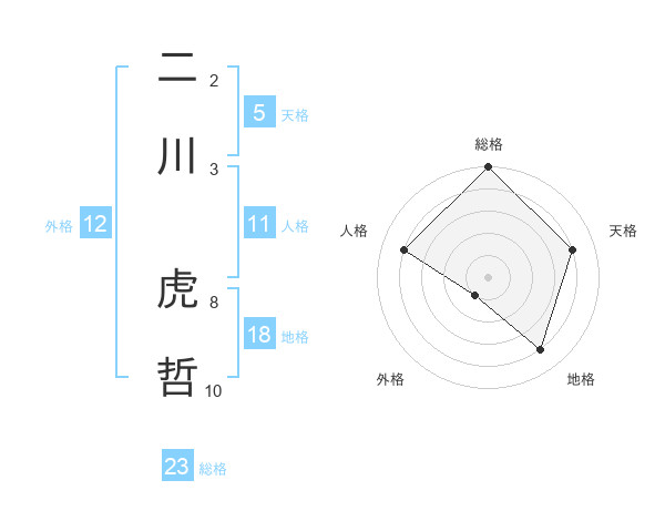 二川 虎哲さんの天格は5画の4点!