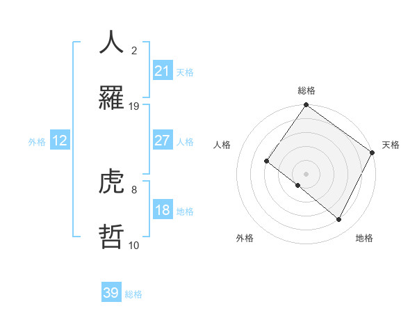 人羅 虎哲さんを姓名の画数から五運を鑑定