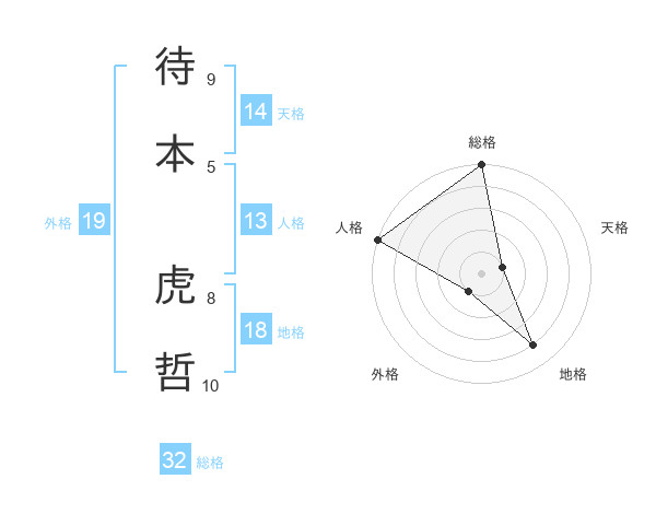 待本 虎哲さんを姓名の画数から五運を鑑定