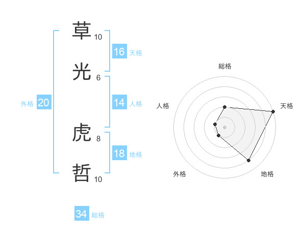 草光 虎哲さんを姓名の画数から五運を鑑定