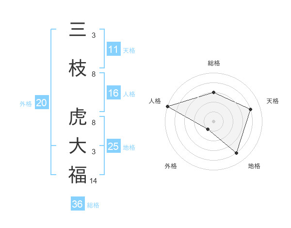 三枝 虎大福さんを姓名の画数から五運を鑑定