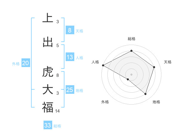 上出 虎大福さんを姓名の画数から五運を鑑定