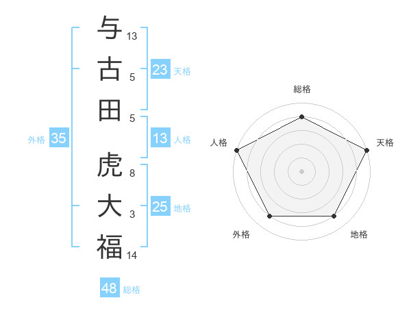 与古田 虎大福さんの天格は23画の5点