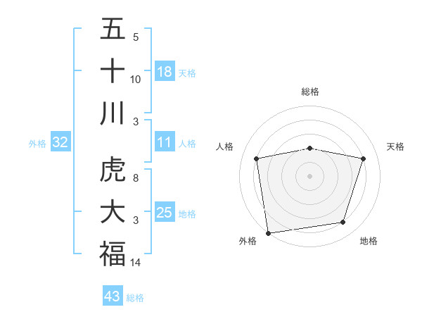 五十川 虎大福さんの総格は43画の2点!