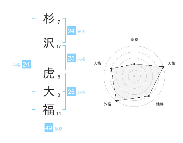 杉沢 虎大福さんを姓名の画数から五運を鑑定
