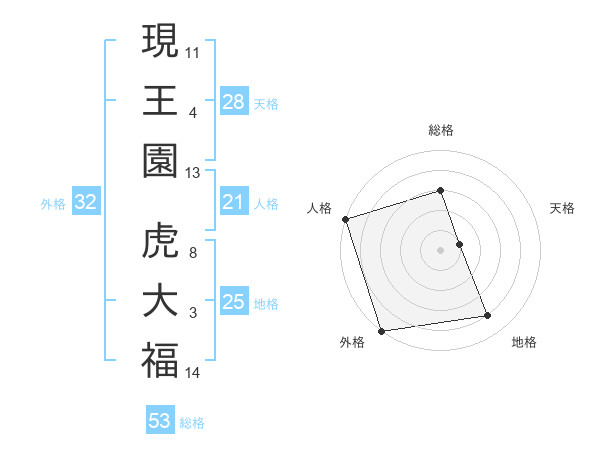 現王園 虎大福さんを姓名の画数から五運を鑑定