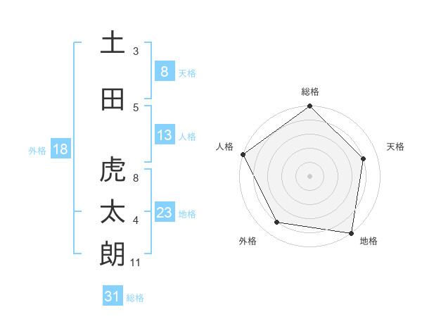 土田 虎太朗さんを姓名の画数から五運を鑑定