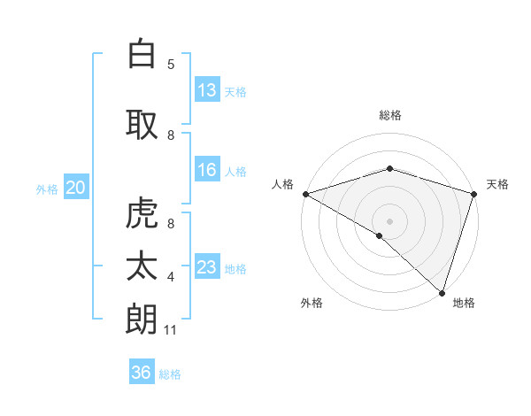 白取 虎太朗さんを姓名の画数から五運を鑑定
