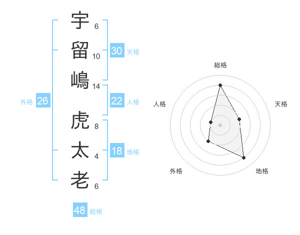 宇留嶋 虎太老さんを姓名の画数から五運を鑑定