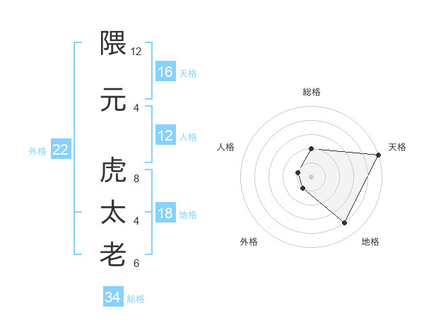 隈元 虎太老さんを姓名の画数から五運を鑑定