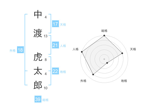 中渡 虎太郎さんを姓名の画数から五運を鑑定