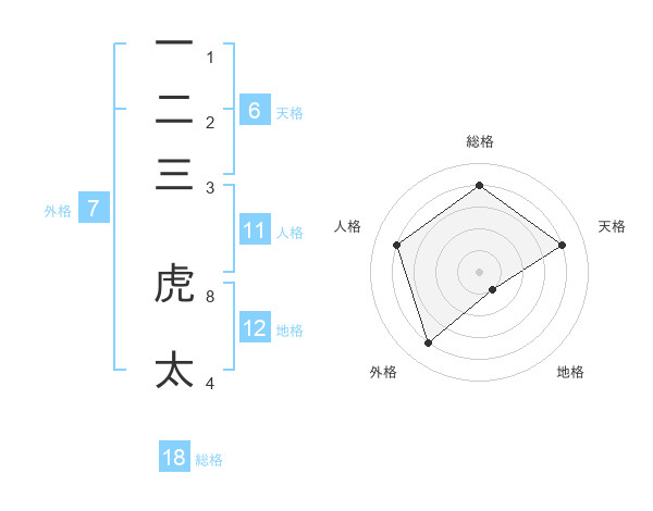 一二三 虎太さんを姓名の画数から五運を鑑定