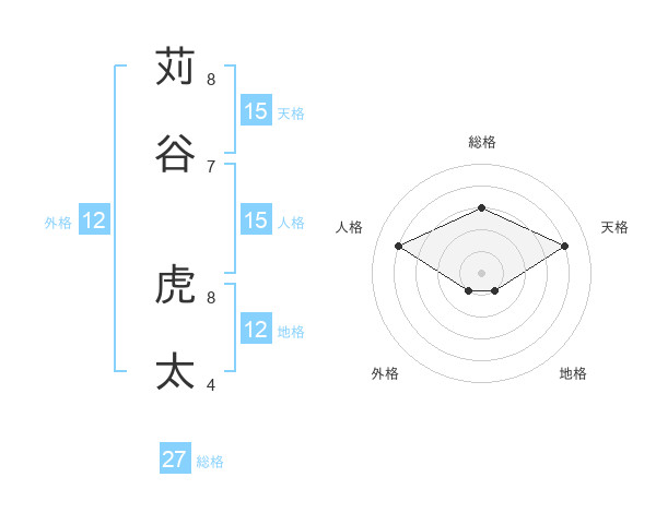 苅谷 虎太さんの総格は27画の3点!