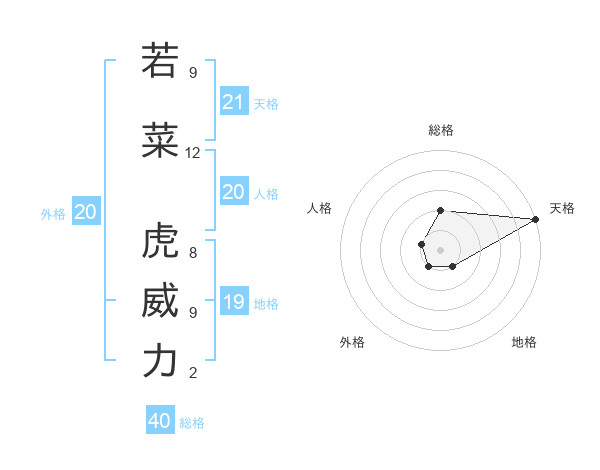 若菜 虎威力さんの天格は21画の5点!