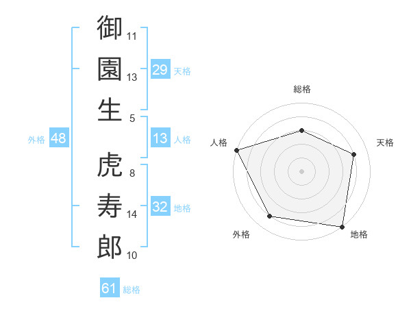 御園生 虎寿郎さんを姓名の画数から五運を鑑定