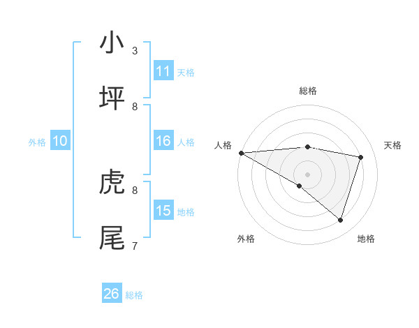 小坪 虎尾さんの総格は26画の2点!