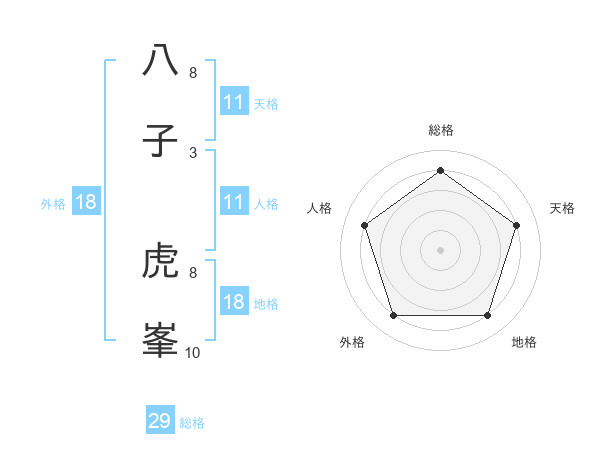 八子 虎峯さんの総格は29画の4点!
