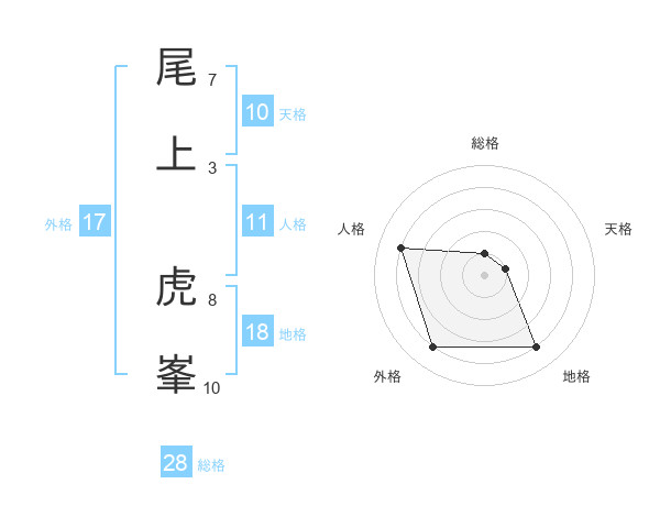 尾上 虎峯さんを姓名の画数から五運を鑑定