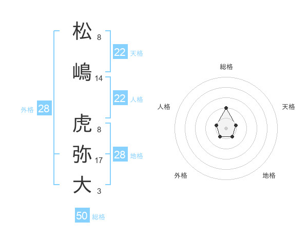 松嶋 虎弥大さんを姓名の画数から五運を鑑定