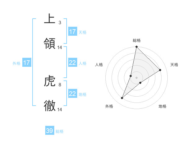 上領 虎徹さんを姓名の画数から五運を鑑定
