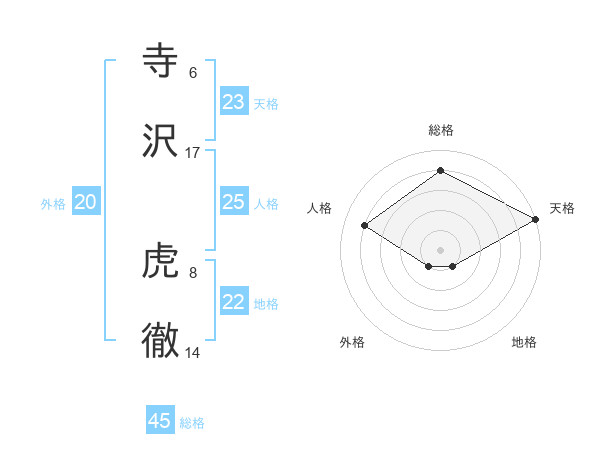 寺沢 虎徹さんの天格は23画の5点!