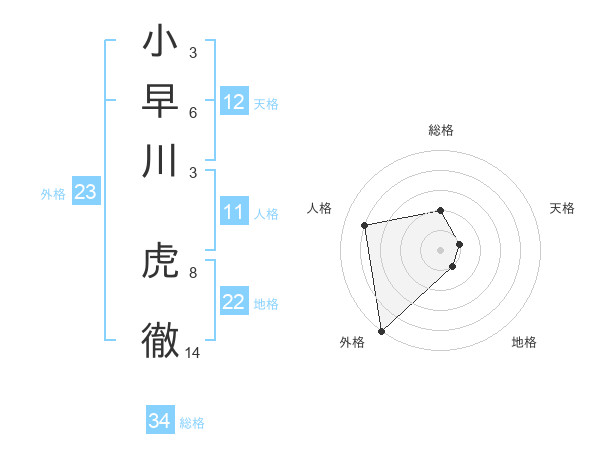 小早川 虎徹さんを姓名の画数から五運を鑑定