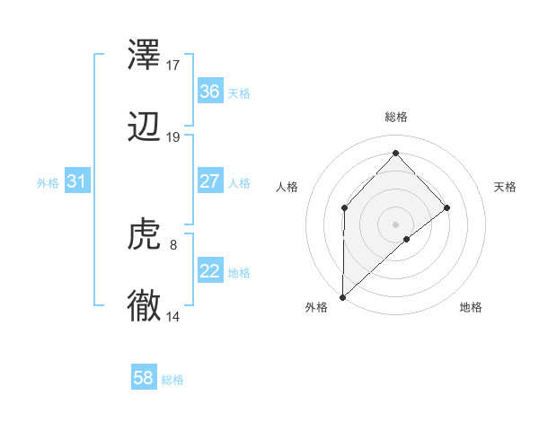 澤辺 虎徹さんの総格は58画の4点!
