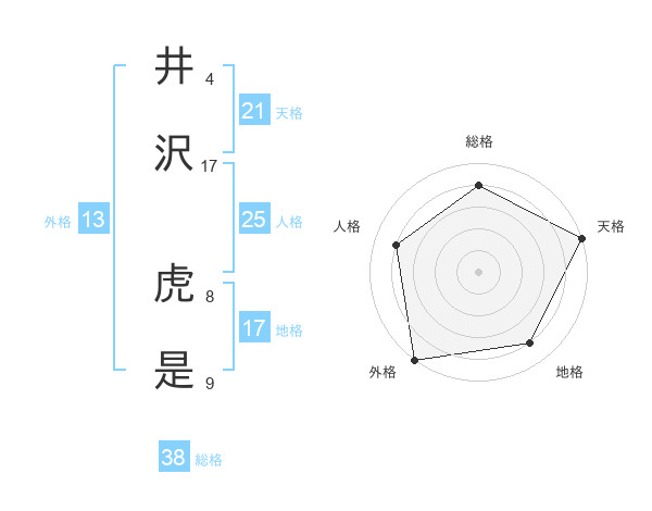 井沢 虎是さんの総格は38画の4点!