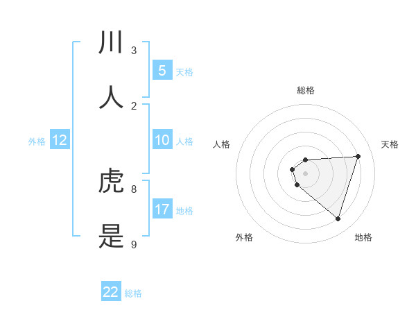 川人 虎是さんの総格は22画の1点!