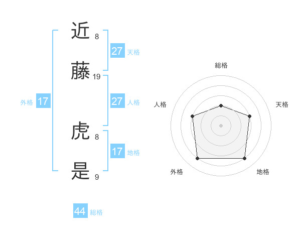 近藤 虎是さんを姓名の画数から五運を鑑定