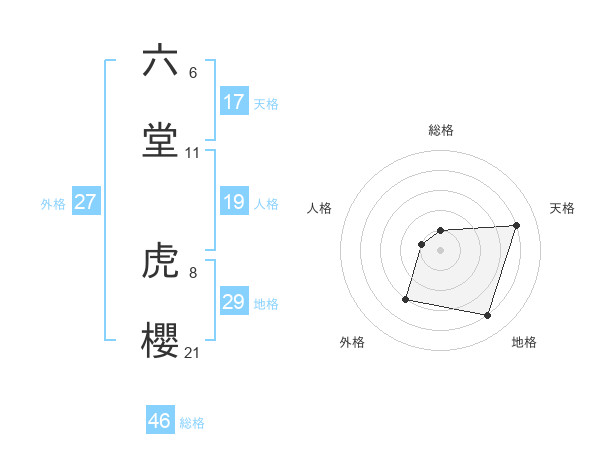 六堂 虎櫻さんを姓名の画数から五運を鑑定