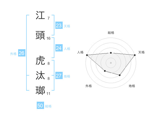 江頭 虎汰瑯さんを姓名の画数から五運を鑑定