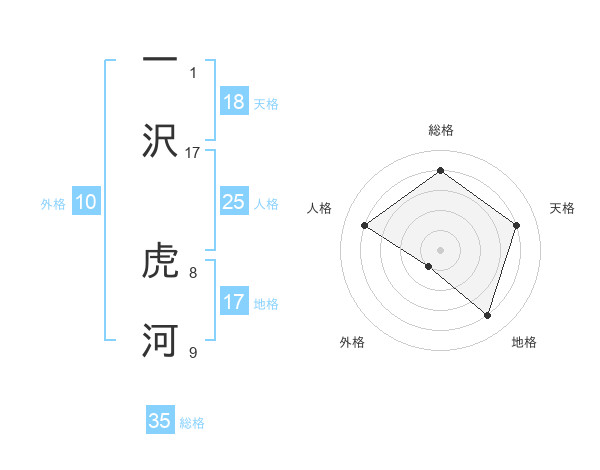 一沢 虎河さんを姓名の画数から五運を鑑定