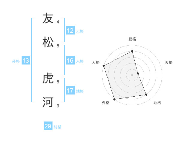 友松 虎河さんの総格は29画の4点!