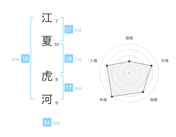 江夏 虎河さんの総格は34画の2点!