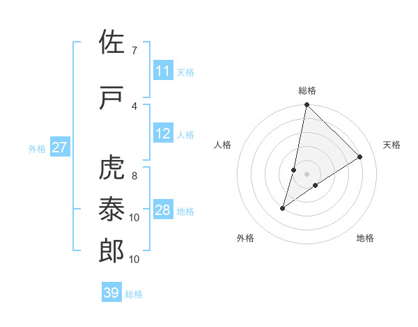 佐戸 虎泰郎さんを姓名の画数から五運を鑑定