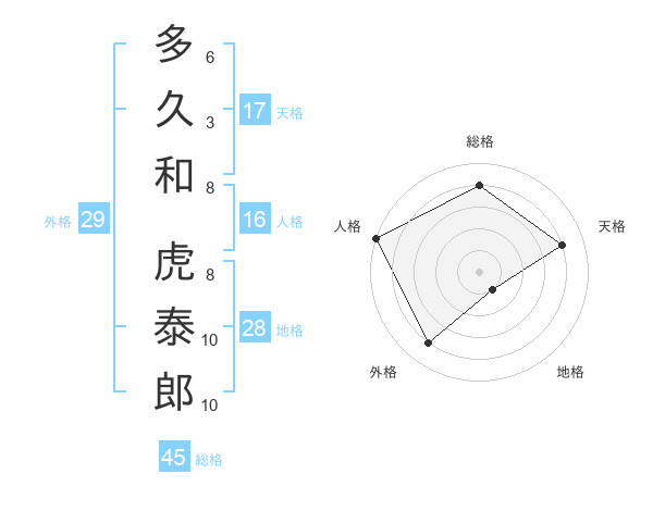 多久和 虎泰郎さんを姓名の画数から五運を鑑定