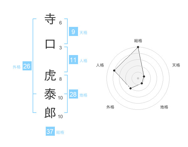寺口 虎泰郎さんを姓名の画数から五運を鑑定