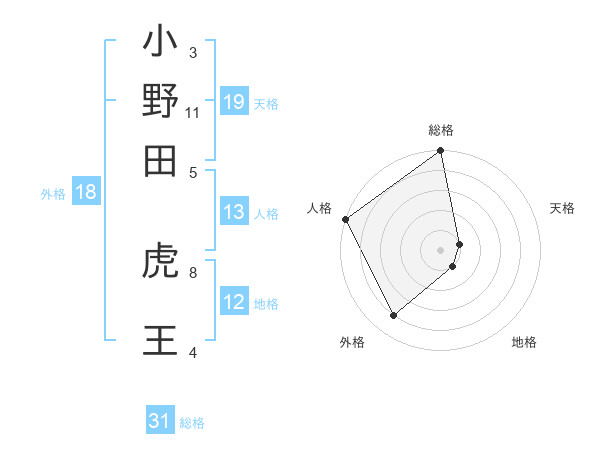 小野田 虎王さんを姓名の画数から五運を鑑定